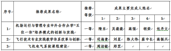 根据《极速电竞 关于做好2017年度校优秀教学成果奖评选工作的通知》(校教字〔2017〕77号)文件精神,以自愿报名、择优推荐为原则,经极速电竞 审核,极速电竞 拟推荐“机场运行与管理专业中外合作办学“五位一体”培养模式的创新与实践”等3个项目参加2017年度校级优秀教学成果奖评选。