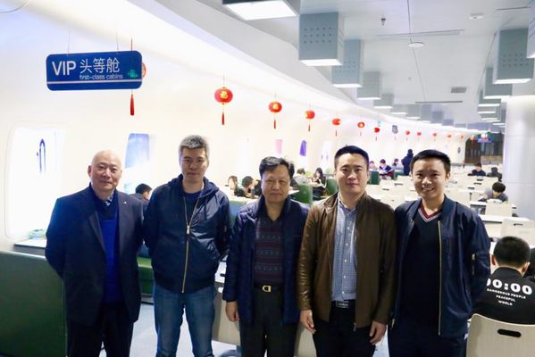 蔡俊在报告会前还参观了电竞 飞行学生餐厅,进行了用餐体验,并合影留念。