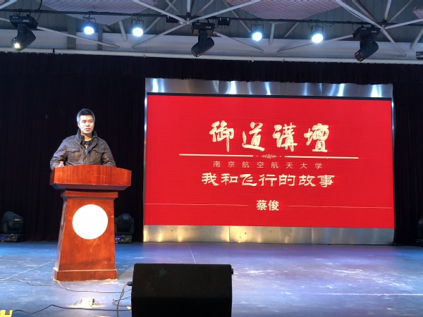 讲坛伊始,蔡俊用自己的亲身经历勉励同学们一定要克服层层困难,努力学飞。紧接着蔡俊给学生们分享了C919首飞的故事,能够取得这样的成就,蔡俊表示离不开试飞团队背后团队的支持和不懈努力,也离不开强大的国家。蔡俊表示自己是这个计划的承载者,他时刻不忘团队和国家,这也是广大青年学生应该学习的。