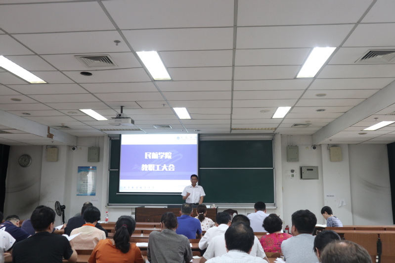 院长胡明华从师资队伍建设,学科科研建设,教学工作,飞行办学,学生教育管理,国际交流与合作以及董事会工作等七个方面对电竞 上半年工作进行了全面的回顾和总结,结合电竞 暑期干部教师会议精神对电竞 下半年工作进行了布置和规划,并向全体教职工详细解读了电竞 综合改革方案。