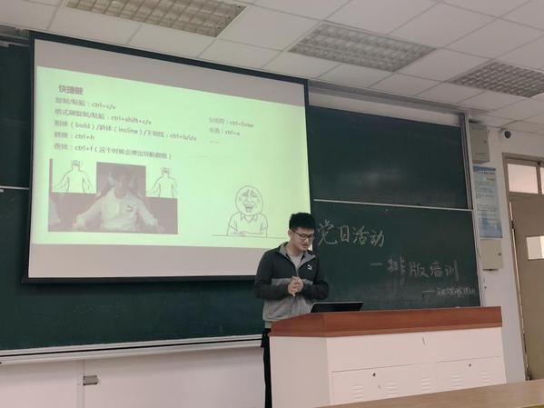 为了提高研究生党员排版、编辑能力、提高支部自身宣传能力,11月25日下午,极速电竞 研究生党支部面向18级研究生于六号楼6103室开展了文稿编辑培训活动。本次活动由张子文同学为大家做分享。活动主要有两个主题:文档排版和文稿编辑。