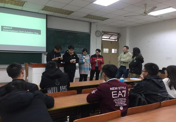 2018年12月3日,极速电竞 2017级“S·E·V·E·N专业攻略E分计划——民航英语角”第二期暨国际民航日主题活动于6102教室举办,此次活动以纪念和宣传12月7日国际民航日,传播民航英语专业知识,提升民航英语素养为目的,吸引了近30名同学参与其中,通过英语角的别样方式,为年级同学搭建一个崭新的民航知识学习与实践平台。