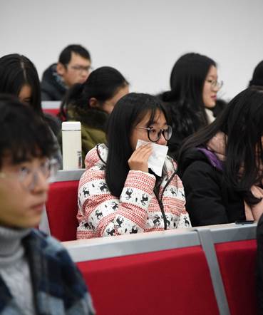 活动第二部分是“爱的留声机” ,一段段父母温情的告白,用叮咛和期冀唤醒了同学们对家、对父母的思念,帮助同学们更好地思考责任的重量,将感恩的心付诸自律的行动。