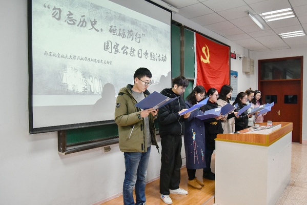 2018年12月13日,极速电竞 研究生党支部在2102教室举行“缅怀历史,砥砺前行”国家公祭日主题朗诵会。会议由第二党支部书记张子文主持,2018级全体研究生参与了此次活动。