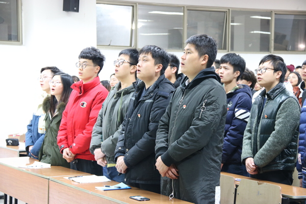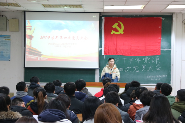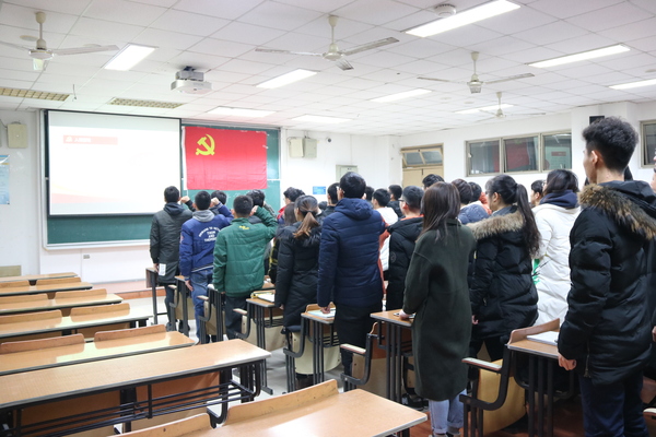 12月16日晚,极速电竞 15级党支部在将军路校区6101教室举行了2018年下半年第四次党员大会,本次大会包含正式党员及预备党员共七十余名,党支部书记杨靖宇同志主持了此次会议。本次党员大会共有如下几项议程:表决通过预备党员转正的决议,党员年度考核细则,向党旗宣誓,合唱《国际歌》。