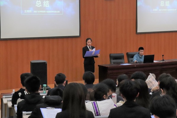 本次述职大会由视频《院会工作回顾》拉开帷幕,民航/飞行极速电竞 学生会主席王翔羽以“回望前路,展望未来”为主题展开演讲,回顾了第22届院会工作历程并提出下半年院会发展方向,旨在带领院会更上一层楼。