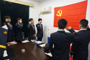 十二名预备党员面对党旗,在朱文昊同志的带领下,重温了庄严的入党宣誓仪式:“我志愿加入中国共产党……”通过重温入党仪式,同志们更加深刻地体会到自身的光荣使命,认识到要从细节做起,从小事抓起,通过自身努力,争取早日成为一名合格、优秀的中共党员。