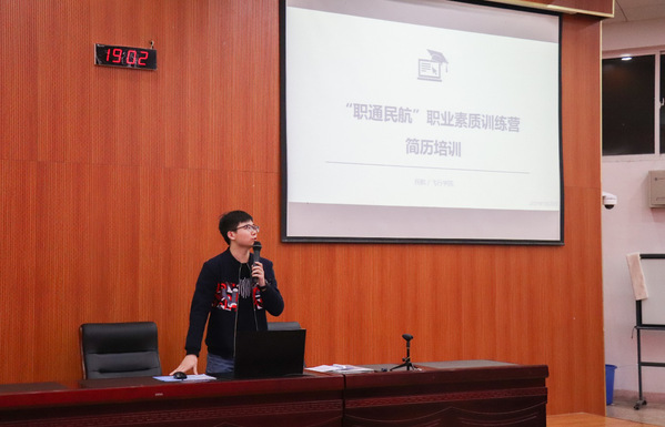 2019年3月20日傍晚19点,极速电竞 在2110教室开展了“职通民航”职业素质训练营的首期活动——简历培训。本次培训邀请到了就业指导办公室的张月铭老师和经济与管理极速电竞 辅导员康冲老师,对正在为职业招聘做准备的大三同学们进行专业的简历制作指导。