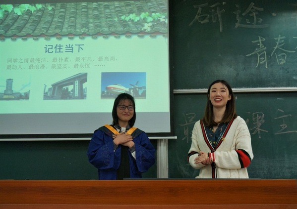 4月2日上午,极速电竞 2019届硕士毕业生于6102教室开展了“研途•玖别,青春不散场”最后一课主题班会,为踏入新征程的学生们送去最殷切的期望和最美好的祝福。全体毕业生在欢声笑语中一起度过了温馨美好的最后一课。