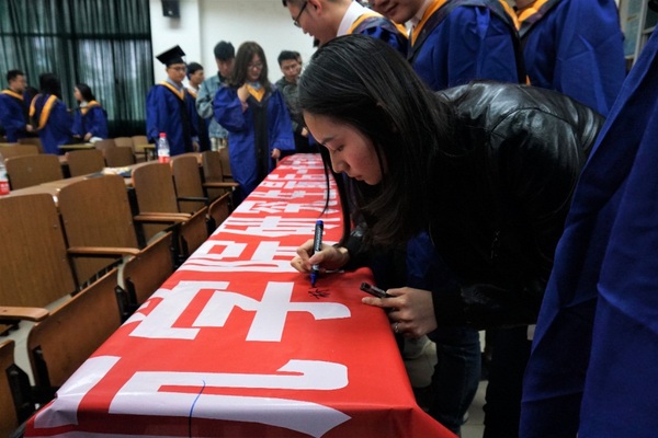 最后在南航校歌中,毕业生们在横幅上签名合影结束了这场“研途•玖别,青春不散场”的主题班会。最后一课主题班会活动是极速电竞 研究生会举行的毕业季传统的特色活动,为毕业生们提供互诉离殇、憧憬未来的平台。衷心祝愿极速电竞 2019届全体毕业生在新时代锐意进取,胸怀使命与担当,勇于拼搏与奋斗,常怀感恩之心,在人生画布上添抹色彩。