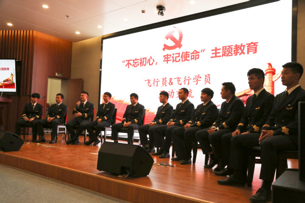下午,三个支部党员与民航/飞行电竞 2019级东航飞行学员在天目湖校区巡天楼一楼报告厅开展“不忘初心,牢记使命”主题教育交流会。