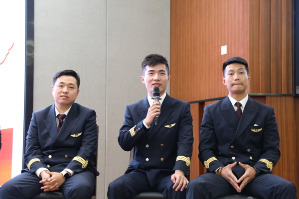 在紧接着开展的飞行员与飞行学员之间的互动交流过程中,现场气氛热烈。面对翘首许久的飞行员学长,东航飞行学员们都显得有些兴奋,频频向学长们请教学习、生活和工作过程中的诸多疑问。如何规划当前的学习,如何应对未来工作中的挑战,如何成为优秀的党员……飞行学长们有条不紊地回答学员们的问题,为他们一一解开心头困惑,也帮助学员们明确前进的方向和努力的目标,提醒全体飞行学员在学好英语、提升个人身体素质的基础上,要不断提高作为飞行员的思想觉悟和作风建设。飞行员学长们精彩的回答赢得了现场的阵阵掌声。