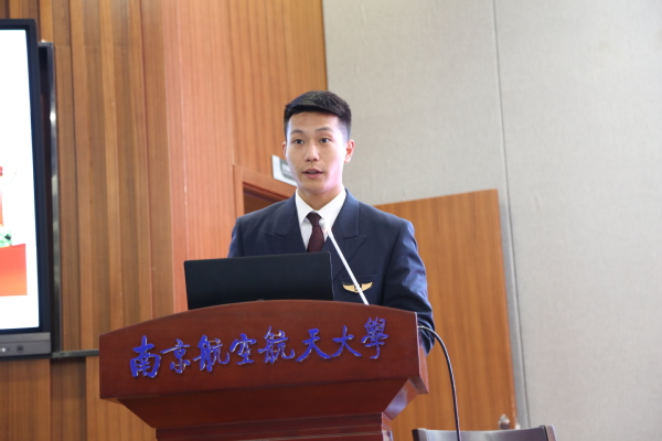 仪式结束后,冯敏介绍了东航公司的发展现状,并期待早日与在场的东航飞行学员们在东航大家庭见面。随后,东航飞行员代表柳迪开展了题为“不忘蓝天初心,牢记肩章使命”的主题报告,通过分享自己学飞的经历,告诫飞行学员们要时刻牢记自己不光是飞行学员的一份子,更是中国力量的一部分,要心存理想和抱负,才能成为优秀的飞行员和骄傲的中国人。