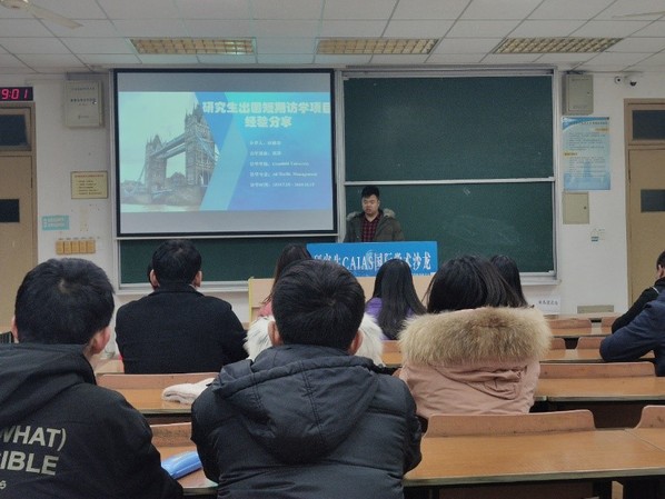 为增进极速电竞 研究生对出国访学交流的经验, 12月19日晚7点,极速电竞 于将军路校区六号楼6403教室举办了“出国访学交流”第十三期国际学术沙龙。本次活动特邀何修齐同学作为嘉宾,他曾于今年7月至10月在英国克兰菲尔德大学进行了为期三个月的短期访学。极速电竞 硕士研究生参加了本次活动。