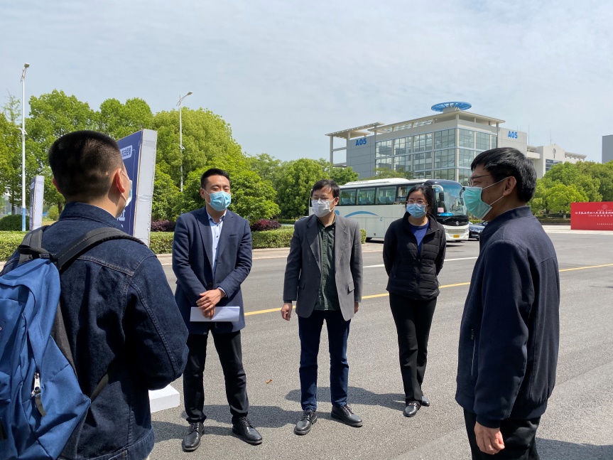 4月23日,电竞 党委书记徐福民、院长孙建红、党委副书记李和新、副院长王艳一行来到学生返校报到点,关心询问了学生返校路上的情况,为返校毕业生送上了电竞 精心准备的返校爱心礼包,礼包内装有防疫手册、防护口罩、学位服、毕业纪念餐券等。电竞 领导叮嘱同学们注意防护,有序离校、安全离校、文明离校,并鼓励毕业生在这个特殊时期奔赴祖国各地建功立业,与祖国和人民共克时艰。