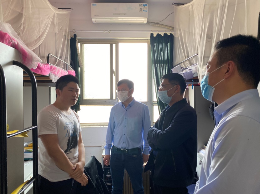 4月30日,徐福民、孙建红、李和新一行前往学生宿舍,看望返校同学,了解学生返校后的生活状况。在学生宿舍,徐福民关切询问同学们的身体情况,并鼓励大家保持良好的心态,积极投入学习和工作中。孙建红告诫同学们要珍惜在校的时光,不负光阴,不负韶华,努力学习知识,扎实掌握本领,认真完成毕业设计。李和新提醒同学们要多通风,做好寝室卫生。他强调现在是季节交替的时候,注意气温变化,及时增减衣物。