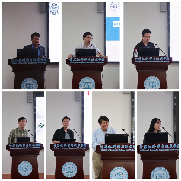 电竞 副院长司海青、院长助理张洪海、副教授孙见忠以及计算机科学与技术电竞 /人工智能电竞 教授马宗民、陈钢、黄圣君、副教授袁伟伟分别做了题为“基于AI方法的飞行中人因工程研究”、“国家空管重点实验室研究成果与需求报告”、“民机预测维修模型及应用”、“大数据智能与知识图谱应用”、“形式化工程数学和下一代人工智能”、“机器学习技术及其在民航中的潜在应用”、“民航飞行人员异常状态监测”的报告。