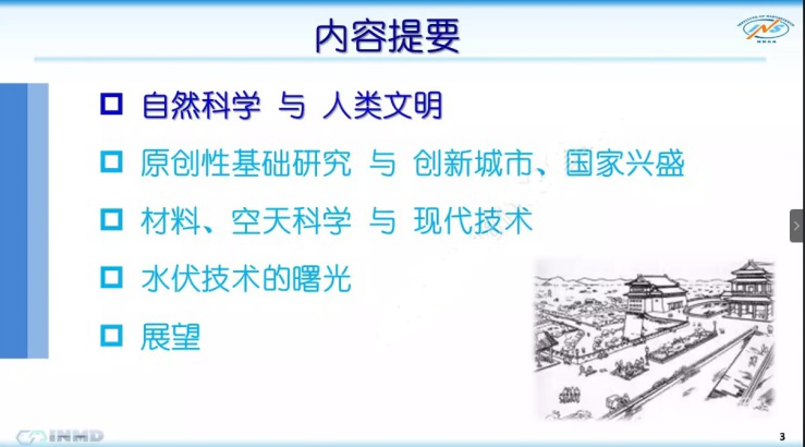 郭万林院士从疫情谈起,与大家分享了人类社会发展中“教育、科学与文明”的演变历程和历史作用。院士结合自身科学研究,着重介绍了从二维平面问题到实际三维问题深研断裂力学,从固体力学学习到航空结构强度研究,由宏入微,逐步进入低维纳米材料结构器件的物理力学、能量转换领域,并越来越深地钻研生命与神经科学,以及近30年从教的体会。同时,介绍了在大师黄玉珊先生的指导下,研究生期间就将经典的二维疲劳断裂理论成功推广到了三维,解决了许多飞机型号中的关键问题,所提出的理论为国际学者所公认,为重大型号的研制及疲劳寿命的准确预测做出了突出的贡献。郭万林院士还详细介绍了其在微纳米力学的研究方向上取得的一系列突破性的成果,举例介绍了力-电-磁-光的多场耦合理论框架,并且揭示了其独特的物理力学性能,包括半导体性、拓扑性等。特别是近年来提出的水伏学、智能力学的概念和学术思想,以及在能源领域的应用前景。课题组所取得的水能转换效率已经超过目前最好的钙钛矿光伏器件。同时,院士对数字飞机/发动机的研究兴趣也将与民航未来科技发展有着紧密的联系。