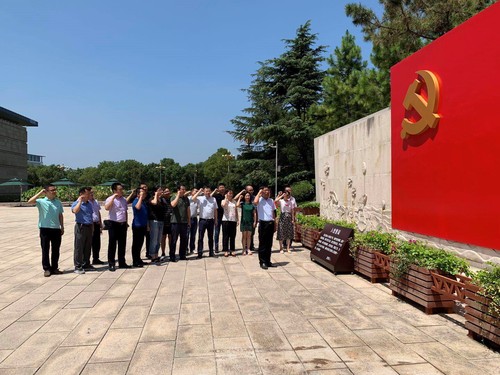 走出南湖革命纪念馆,全体党员同志在徐福民书记带领下,高举右拳饱含崇敬之情面向鲜红的党旗庄严宣誓,重温入党誓词,让入党初心再现。