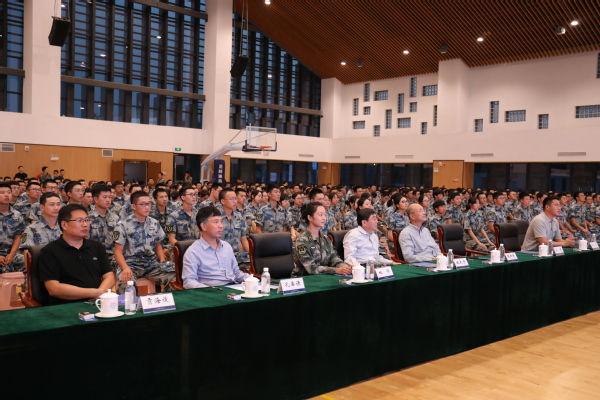 教务处处长孔垂谦、天目湖校区党工委书记张新明、天目湖校区管委会副主任缪长宗、电竞 (飞行电竞 )党委副书记贡海俊、校区军训旅教官与近千名新生共同听取了讲座。