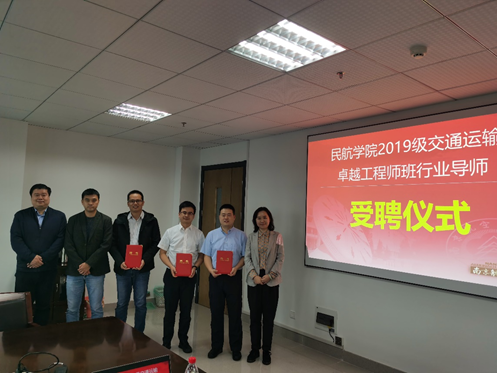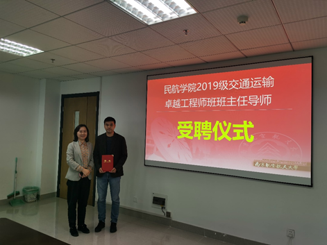 最后,杨玲主任给班级授旗。吴薇薇副院长为卓越班导师厦门空管站进近管制室副主任叶代鹏、吉祥航空公司工程师王磊、江苏空管分局工程师戎春波、华东空管局维修中心工程师张云鹏颁发行业导师聘书。为2019级交通运输(空中交通管制与签派)“卓越工程师培养计划”班班主任叶博嘉颁发班主任聘书。