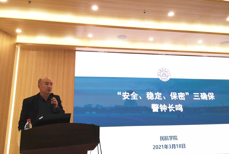 最后,刘建成对全体教职工进行“安全、稳定、保密”三确保宣传教育,通过列举学术诚信、师德师风、意识形态、学生安全管理等方面的问题事件,说明安全稳定保密无小事,责任重于泰山。警示全体教职工对自己负责、对学生负责、对国家负责。