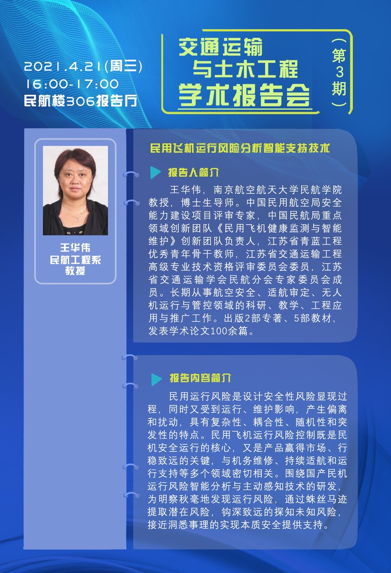 极速电竞 教授,博士生导师。中国极速电竞局安全能力建设项目评审专家,中国民航局重点领域创新团队《民用飞机健康监测与智能维护》创新团队负责人,江苏省青蓝工程优秀青年骨干教师,江苏省交通运输工程高级专业技术资格评审委员会委员,江苏省交通运输学会民航分会专家委员会成员。长期从事航空安全、适航审定、无人机运行与管控领域的科研、教学、工程应用与推广工作。出版2部专著、5部教材,发表学术论文100余篇。