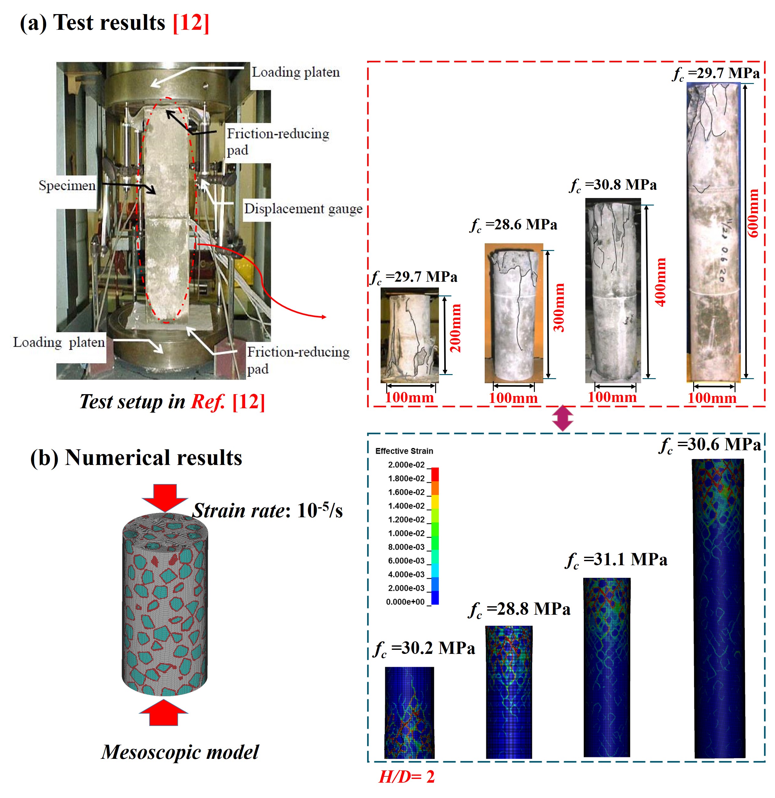 研究人员提出了一种新颖的混凝土3D随机细观模型,对不同高径比珊瑚混凝土试件的静态抗压行为及破坏机理进行了研究。研究发现珊瑚混凝土的单轴抗压强度和应力应变曲线均与试件高径比有关,随着高径比的增大,峰后应力应变曲线变得更陡,表现出明显的局部破坏行为。较短试件的破坏速度更快,而较长试件的表面裂纹沿着试件侧面不断扩展。上述研究结果对于珊瑚混凝土结构分析具有一定的指导意义和工程价值。