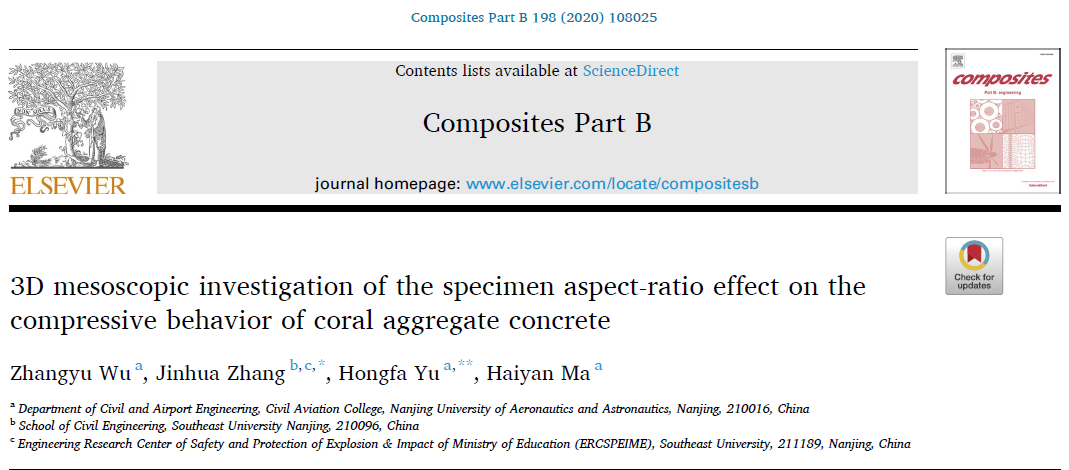 该研究成果近期以“3D mesoscopic investigation of the specimen aspect-ratio effect on the compressive behavior of coral aggregate concrete”为题发表在Composites Part B: Engineering上,电竞 博士研究生吴彰钰为论文第一作者,东南大学土木工程电竞 张锦华教授和电竞 余红发教授为论文通讯作者,电竞 麻海燕讲师为共同作者。该项工作得到多项国家自然科学基金项目联合资助。