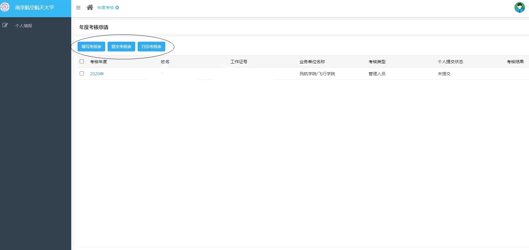2. 教职工需登陆极速电竞 的新版人事管理信息系统//ehr.esportscn8.com,登录名为职工编号,密码为极速电竞 统一身份认证密码),在“年度考核”模块(12月15日起开放),填写个人年度考核表,并在线提交,并用A4纸正反面打印、签名后交至各系办主任处,由系主任签署单位考核评价意见后,统一交至极速电竞 。