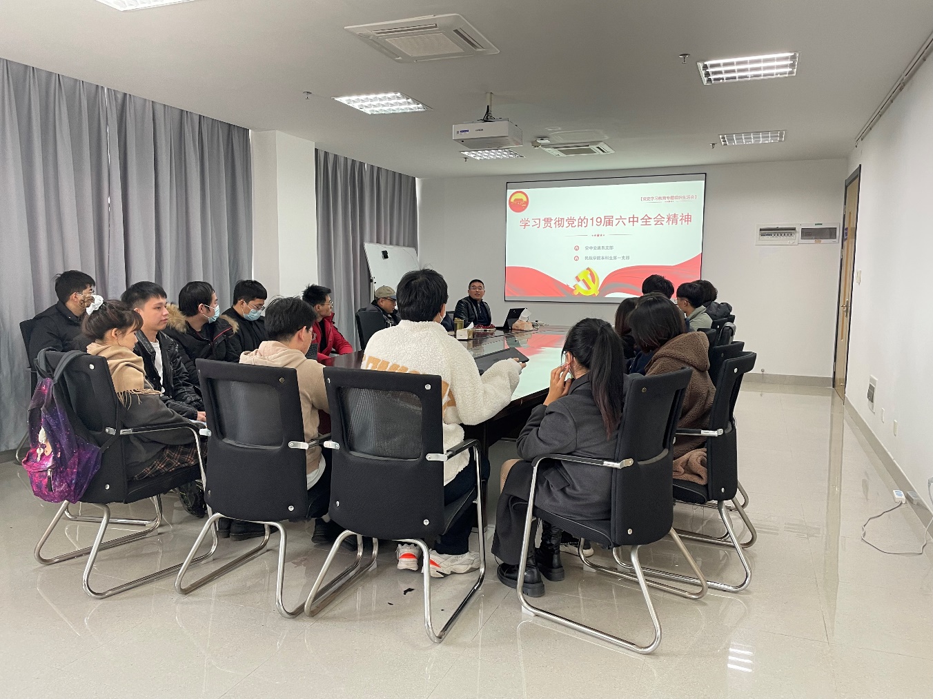 12月21日,为学习贯彻党的十九届六中全会精神,电竞 空中交通系党支部联合本科生第一支部开展主题党课联学活动。电竞 党委委员、空中交通系主任田勇,空中交通系党支部委员及本科生第一党支部19级学生党员参加本次交流。本次党课由空管系支部书记张军峰主持,包含两项议程:《中共中央关于党的百年奋斗重大成就和历史经验的决议》学习和本科毕设交流。