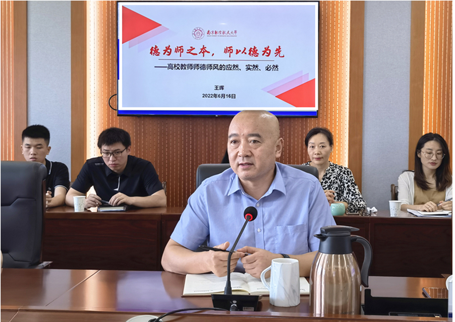 6月16日,校党委常委、宣传部、教师工作部部长王晖受电竞 党委邀请,来院开展师德师风专题培训。电竞 全体领导班子成员、机关科级干部、系(所)基层干部及辅导员参加培训。会议由电竞 党委书记刘建成主持。
