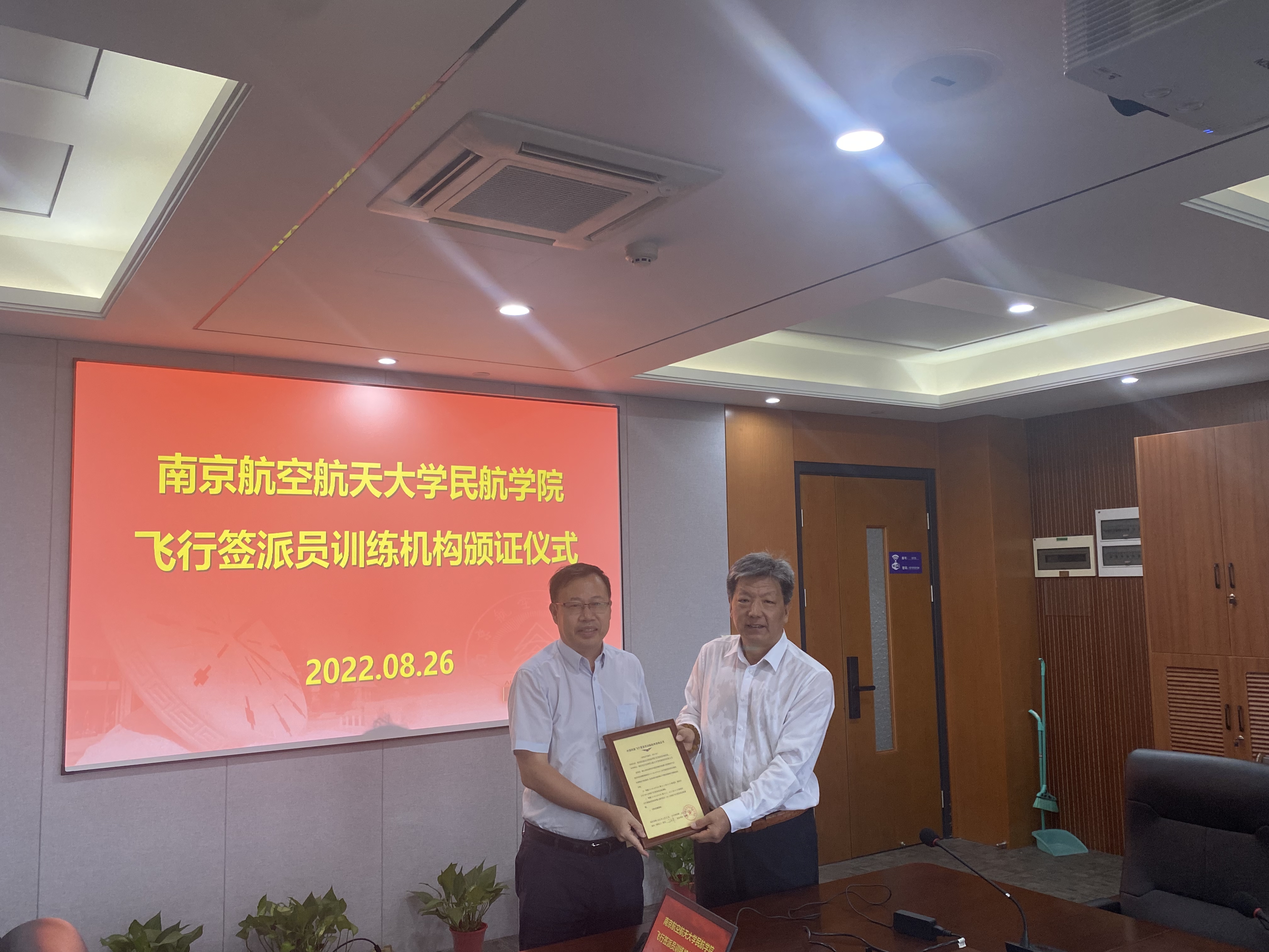 8月26日下午,电竞 飞行签派员训练机构颁证仪式在电竞 1213会议室顺利举行,民航江苏监管局航务处处长郭久宏、监察员罗卉等出席会议。电竞 院长孙建红,副院长田勇、空管与签派专业负责人及机关相关办公室负责人参加会议,会议由电竞 副院长田勇主持。