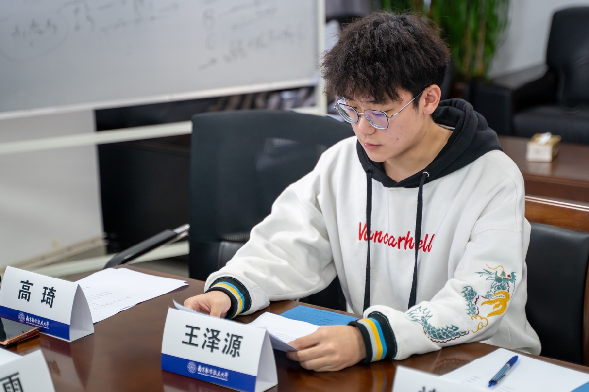 王泽源作为入选学生代表发言,他表示作为一名立志于科研的学生一定不会辜负电竞 的期望,珍惜来之不易的机会,以严谨的学习态度,认真求是的作风,向指导老师虚心求教,不断提升自身科研能力。