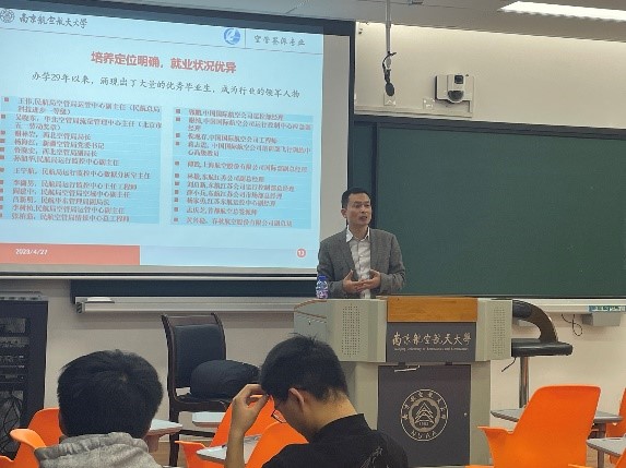 田勇教授、张军峰副教授分别向参加宣讲会的学生介绍“空中交通管制与签派2+2”专业的基本情况,详细解读了学科前沿发展、课程配置、师资队伍、毕业目标、就业升学等情况并一一耐心解答同学们的问题。