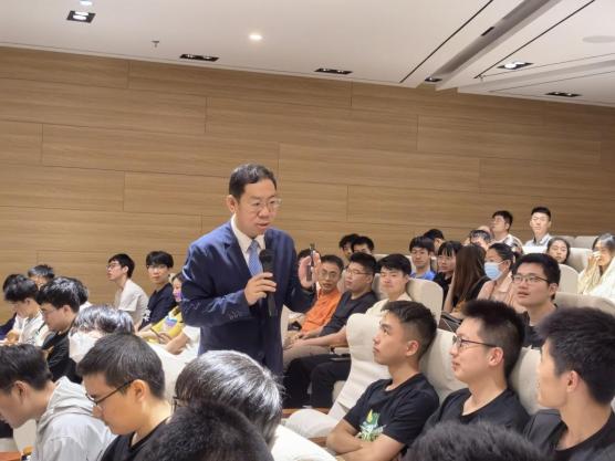 刘道刚从沿革与背景、初心与使命、蓝图与梦想、探索与实践四个方面向师生们介绍了天津市探索交通强国的实践历程。他生动地讲述了我国交通发展的前世今生、天津市交通发展的历史、交通强国天津实施的相关方案以及天津市交通运输委在强国试点示范引领、智慧交通对症施策、重点项目加快建设、科学治理多措并举、货运枢纽补链强链、人民交通全心为民等多个方面所作的探索与实践。党课最后,他以一首《不忘初心》结尾,“万水千山不忘来时路,鲜血浇灌出花开的国度…”将现场气氛再次推向高潮。