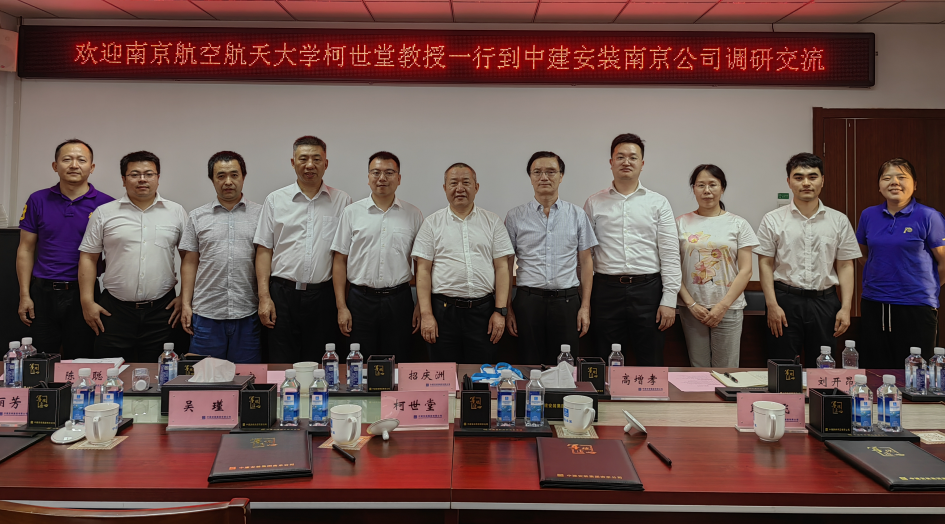 为推动土木工程专业和智能建造专业的高质量发展,优化现有的合作发展机制,8月11日教务处副处长柯世堂带队赴中建安装集团南京公司走访调研。中建安装集团南京公司党委书记招庆洲、副总工程师高增孝、人力资源部经理周正安等热情接待了柯世堂一行。土木与机场工程系主任吴瑾、支部书记耿飞、系副主任张丽芳等老师参加此次调研。