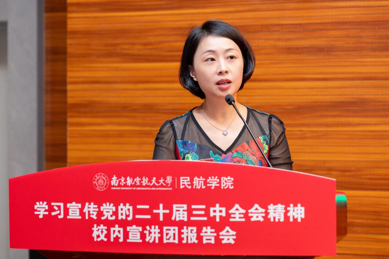 李君代表电竞 党委感谢刘向雷教授的精彩报告,指出本次宣讲内容丰富、深入浅出,既有理论高度、又紧密结合民航特色,生动形象的分析解读了关于民航绿色低碳转型的丰富内涵,对于电竞 师生更好地理解党的二十届三中全会精神起到了非常好的指导和启发作用。她号召全体师生以实际行动把智慧和力量凝聚到全会部署的各项改革任务上来,全方位不断塑造发展新动能新优势,推动电竞 、电竞 工作再上新台阶。