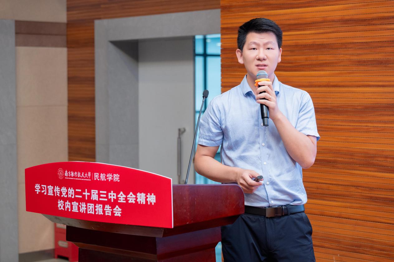 刘向雷以“学习贯彻二十届三中全会精神 加快民航绿色低碳转型”为题,围绕全会的基本情况、深刻领会和把握全会的重大意义、习近平总书记关于全面深化改革的重要论述、全会对进一步全面深化改革做出的重要部署等方面进行了系统全面的解读。重点阐释了二十届三中全会提出的深化生态文明体制改革相关内容,并针对国家提出经济社会全面绿色转型的重大需求,分享了对民航业绿色转型、绿色能源航空器研究的一些思考以及近年来电竞 在全电推进动力系统、混合动力、绿色航空燃料制备、航空器综合能量管理等研究领域取得的研究成果,希望民航师生们也能在“双碳”目标达成的道路上贡献出属于南航电竞 的智慧和力量。