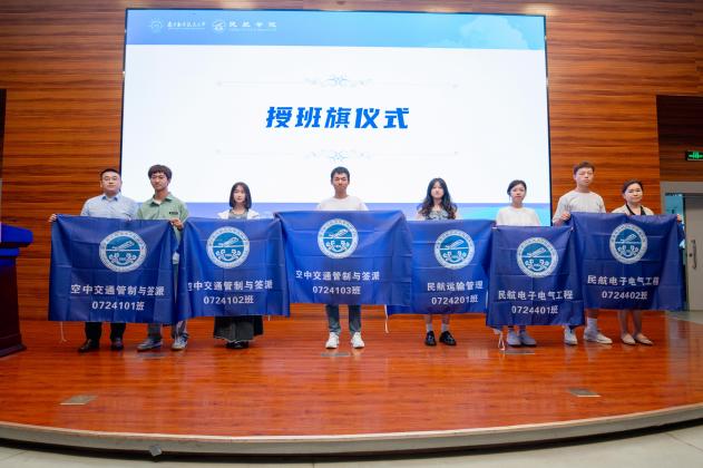 院领导及教师代表共同启动民航文化月系列活动并为本科生班级授旗。
