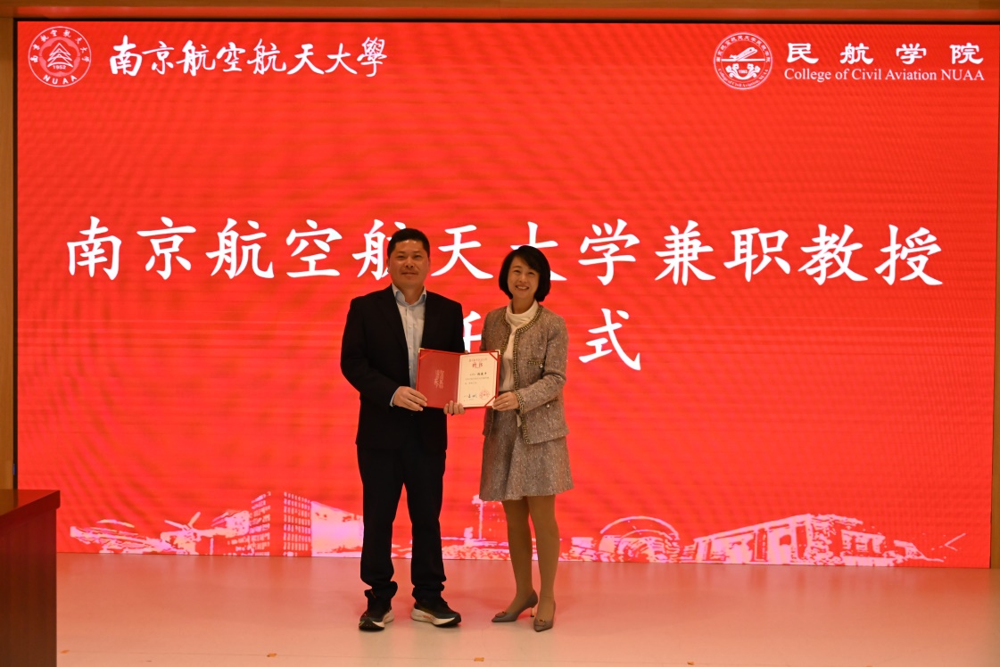 李君为张建平颁发兼职教授聘书。张建平表示,作为南航校友、民航院友,此次受聘为电竞 兼职教授,既是荣誉,更是责任。未来将积极履行南航兼职教授职责,进一步在学术交流、科研合作、人才培养等方面推进合作,为“交通强国”民航新篇章建设做出更大贡献。