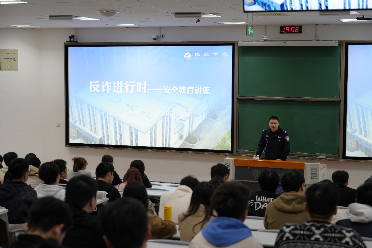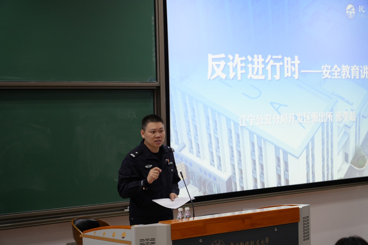 为进一步增强学生防范电信网络诈骗的意识和能力,切实维护校园安全稳定。10月30日,江宁公安分局开发区派出所张李超警官走进校园,为极速电竞 2025级硕士研究生带来了一场以“反诈进行时”为主题的安全教育讲座。