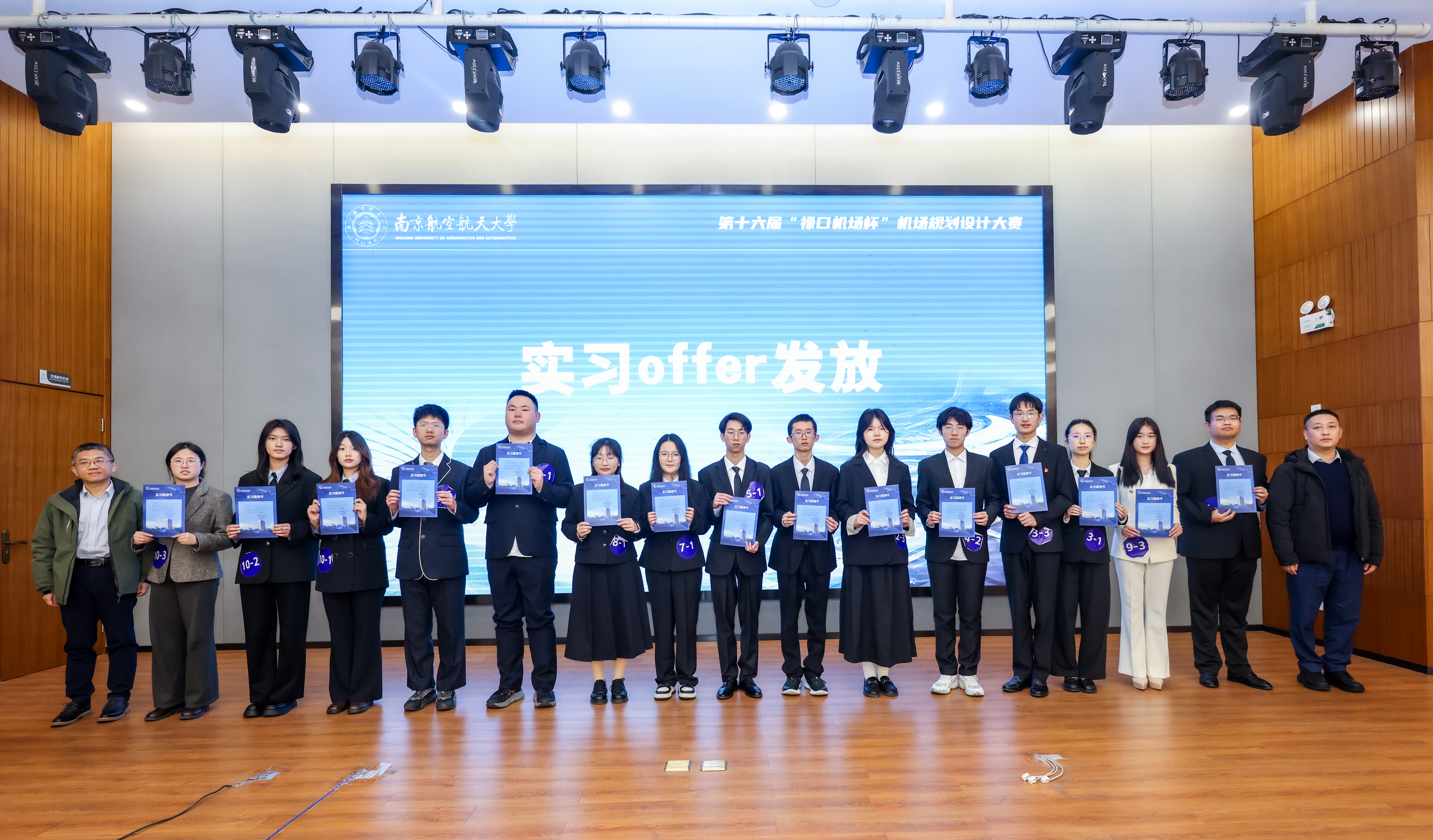 决赛中,10支队伍围绕“平安、绿色、智慧、人文”的“四型机场”理念展开精彩答辩。各团队紧密围绕国家区域发展战略,在枢纽定位、容量预测、多方联运等核心环节,提出了工程逻辑严谨的解决方案,论证过程数据支撑充分,设计方案周密详实,全面展现了电竞 学子的专业功底和创新热情。最终,大赛评选出特等奖1项、一等奖2项、二等奖3项、三等奖4项,东部机场集团有限公司现场向15名优秀学子颁发了实习录用意向书。