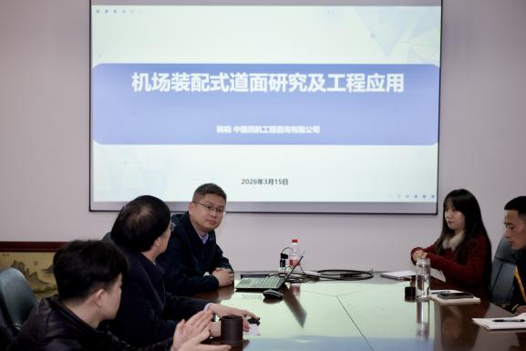 上半场,韩晓以“数字化规划设计新技术赋能机场新基建”为题,从国家政策导向与行业发展需求出发,系统分析了机场数字化转型的时代背景与现实意义,重点阐述了数字化技术在机场规划、设计与建设过程中的重要作用,指出数字化规划设计正成为推动民航基础设施高质量发展的重要技术路径。下半场,韩晓以“机场装配式大排面研究及工程应用”为题,系统介绍了机场装配式道面技术在国内外的发展现状与研究进展,并结合典型工程实践,对装配式大排面在机场道面建设中的关键技术与工程优势进行了深入分析。