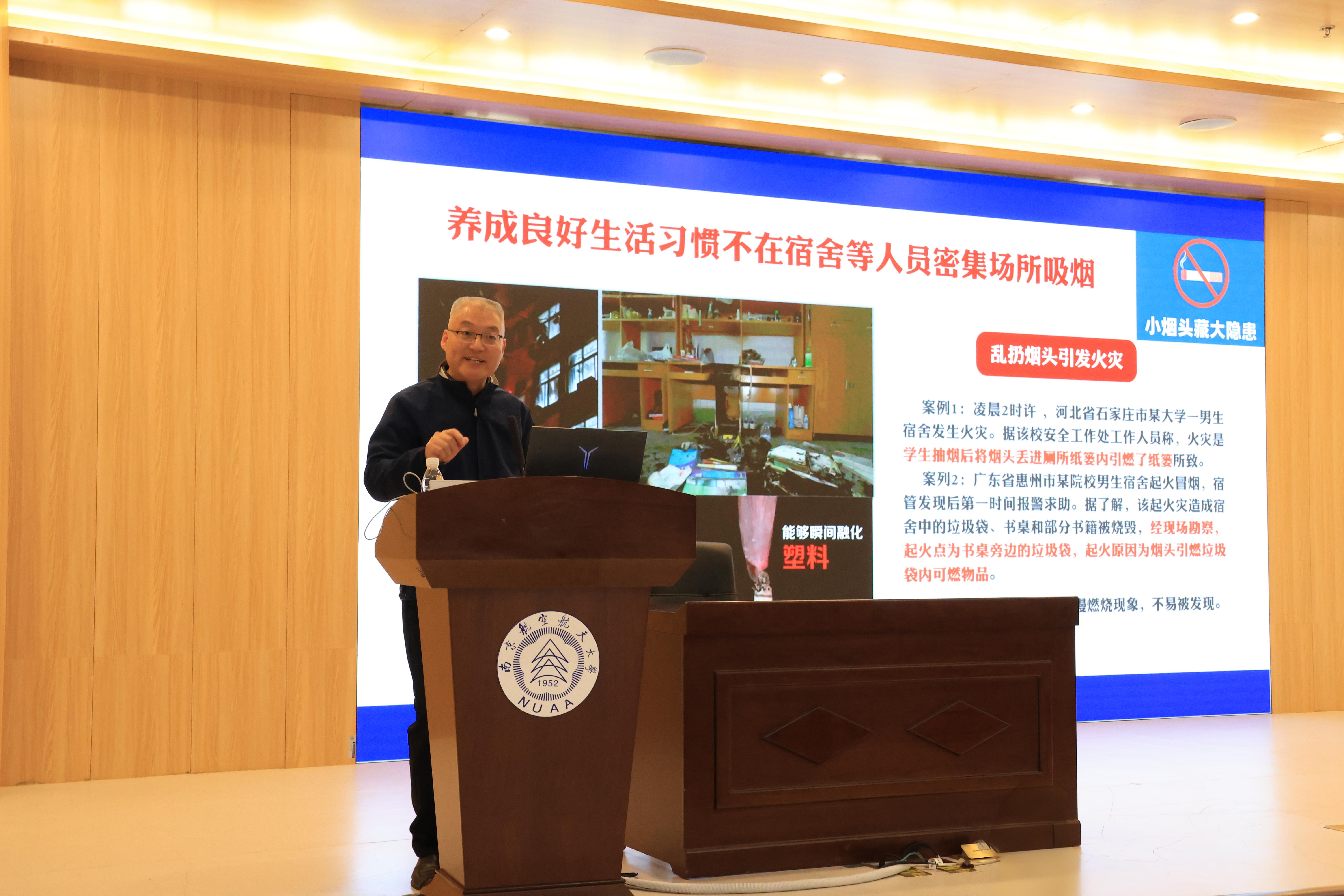 为落实“健康第一”教育理念,进一步强化学生骨干责任担当,4月22日晚,电竞 邀请将军路校区保卫办主任李广老师开展安全专题培训。电竞 辅导员、宿舍长、班级及研究生工作室安全员等学生骨干参加本次培训。