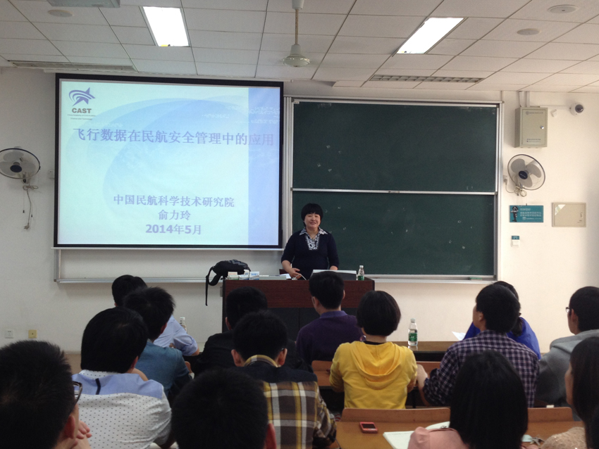 2014年5月7日下午,中国民航科学技术研究院俞力玲研究员来院作了关于《飞行数据在民航安全管理中的应用》的讲座,俞研究员从飞行数据系统、在事故调查中的应用、飞行品质监控以及中国民航飞行品质监控系统等四个方面详细讲解了目前我国在民航飞行安全方面的一些法规要求、监管措施、事故调查和模拟以及民航安全数据系统建设等内容,讲座图文并茂并穿插模拟的安全事故视频,引起了极速电竞 民航安全技术方向的教师和研究生的极大兴趣,对极速电竞 相关教师和学生今后从事民航安全领域的教学科研工作起到积极的引领作用。