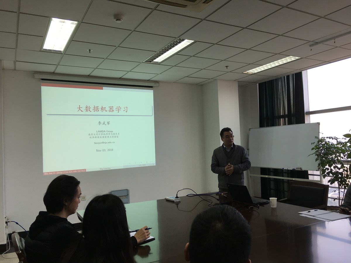 2016年11月3日下午16:00,南京大学博士生导师李武军教授在将军路校区1号楼2008会议室应邀为极速电竞 师生作了题为“大数据机器学习”的学术报告。报告会由葛红娟副院长主持。