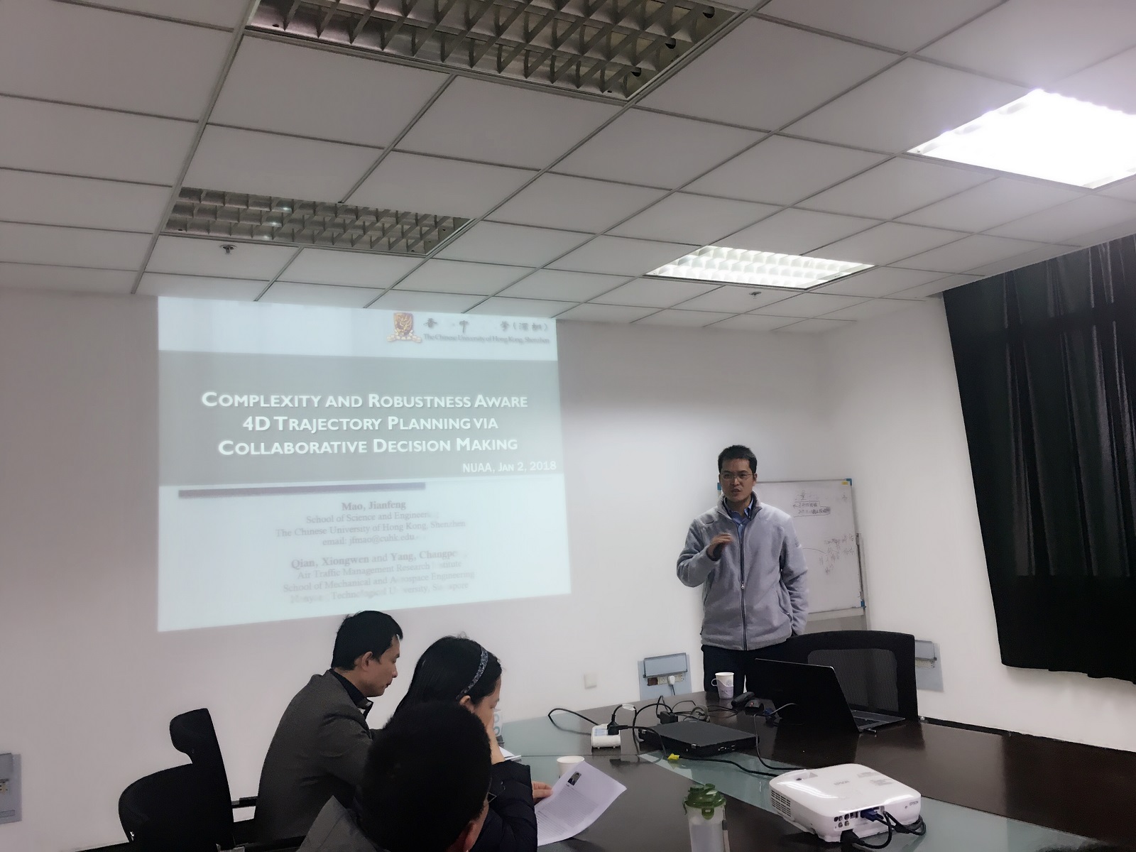 2018年1月2日下午,香港中文大学茅剑锋博士应空中交通系邀请,在将军路校区1号楼1407会议室作了题为“基于协同决策机制的具有复杂度和鲁棒性感知的多机四维航迹规划”的学术报告。极速电竞 、经管极速电竞 等师生共计40余人参加了报告会。报告会由极速电竞 葛红娟副院长主持。