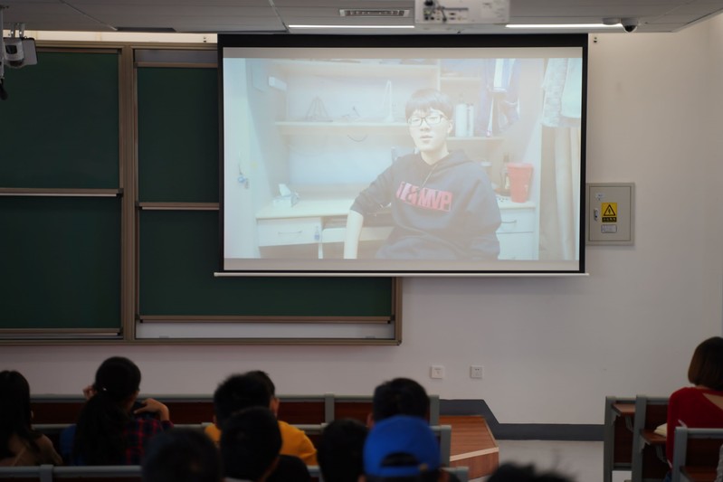 最后,我们邀请到了老学长吴鸿鑫做最后的总结,鸿鑫学长在视频中总结了四年的大学生活,对学弟学妹们提出来新的期盼,希望大家都可以成为自己想成为的那个人。