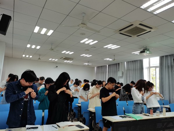 第三个部分是共同佩戴党徽。在该环节,全体党员起立并庄重地给自己佩戴好党徽,这不仅仅是一个简单的佩戴动作,也意味着他们从今天开始正式成为了极速电竞 硕士20级联合党支部的一员。